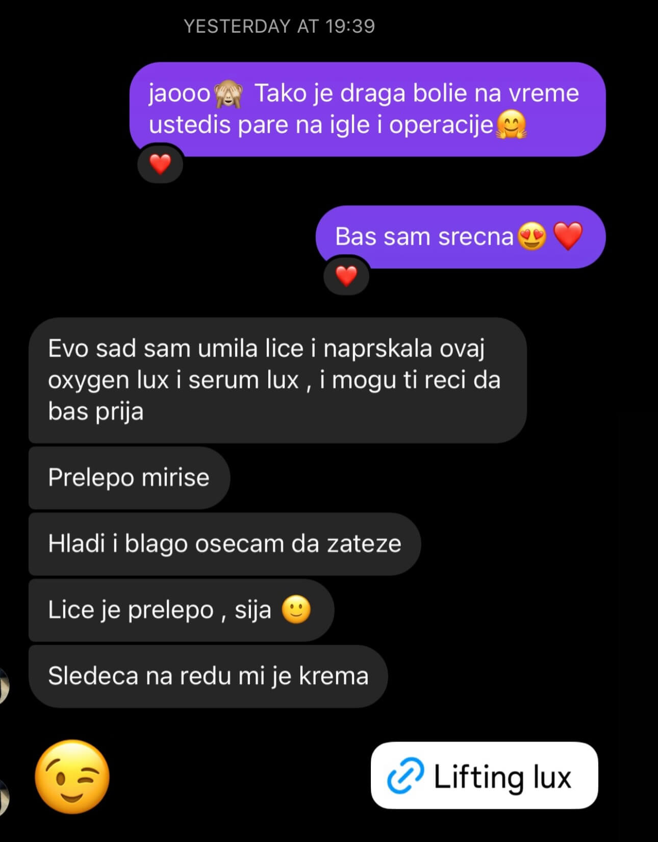 Kad se pogledam u ogledalo, lice mi izgleda kao da sam se naspavala i kad nisam 😄 To mi je dovoljno.